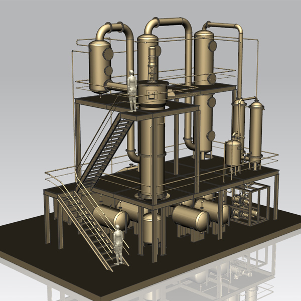 2、蒸餾系統:通過燒燃料油、燃氣等燃料將釜內廢機油在真空狀態加熱至工作溫度,同時釜內配有攪拌系統和保溫系統。